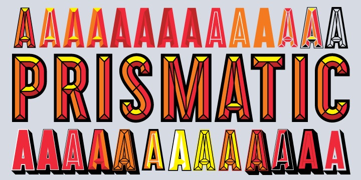 Prismatic Font Family is a flexible and reliable font created to fit multiple design needs, from branding and packaging to social media and editorial layouts. Prismatic is an 11 font system that can be layered in different ways to create a number of classic titling effects used commonly in signage by skilled sign painters and sign makers.