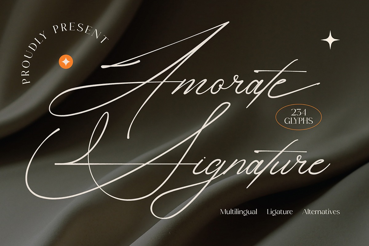 Amorate Signature Script Font brings a balanced structure and contemporary look, making it suitable for both digital and print design. Amorate is an elegant signature-style script font designed with long, flowing strokes and refined handwritten details. Its smooth curves and graceful letterforms create a luxurious, romantic, and personal feel-perfect for logos, branding, wedding designs, fashion editorials, and premium social media visuals.