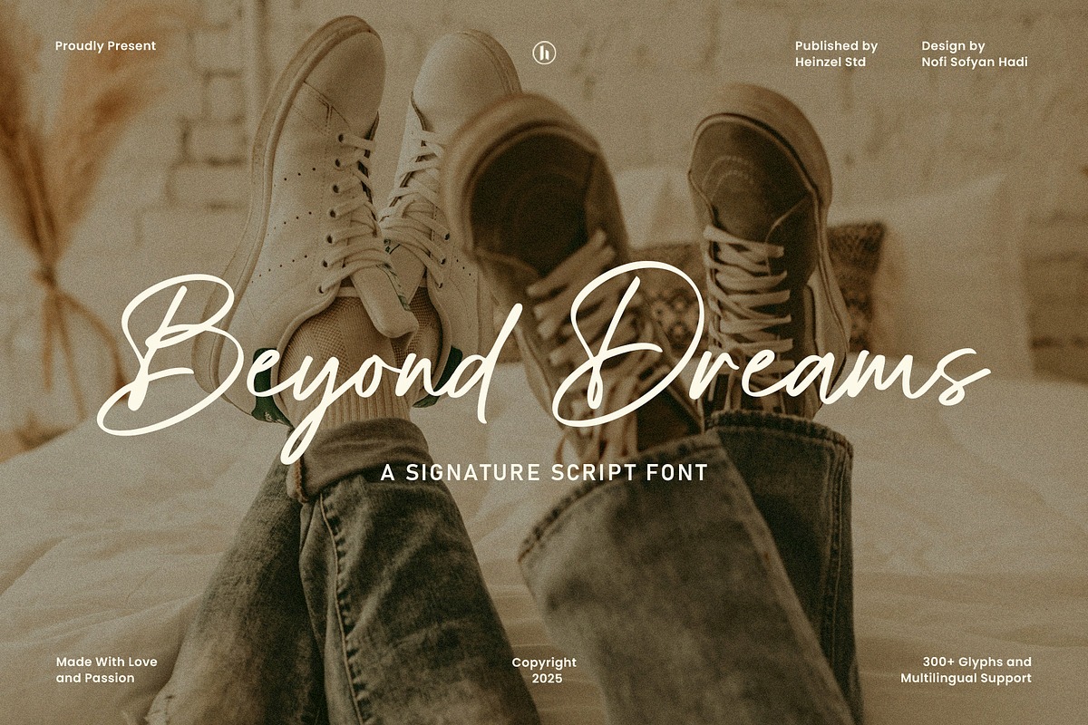 This typeface can be downloaded freely for PERSONAL USE, but if you need the full package—including extended glyph sets, stylistic alternates, and permission for commercial applications—please obtain the properly licensed version from the official provider, whose link is included here for accurate attribution and legitimate distribution: https://creativemarket.com/Heinzel/292015542-Beyond-Dreams-Signature-Script-Font