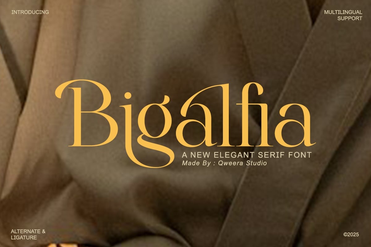 Bigalfia blends modern elegance with timeless serif structure, making it ideal for designers who seek subtle sophistication.