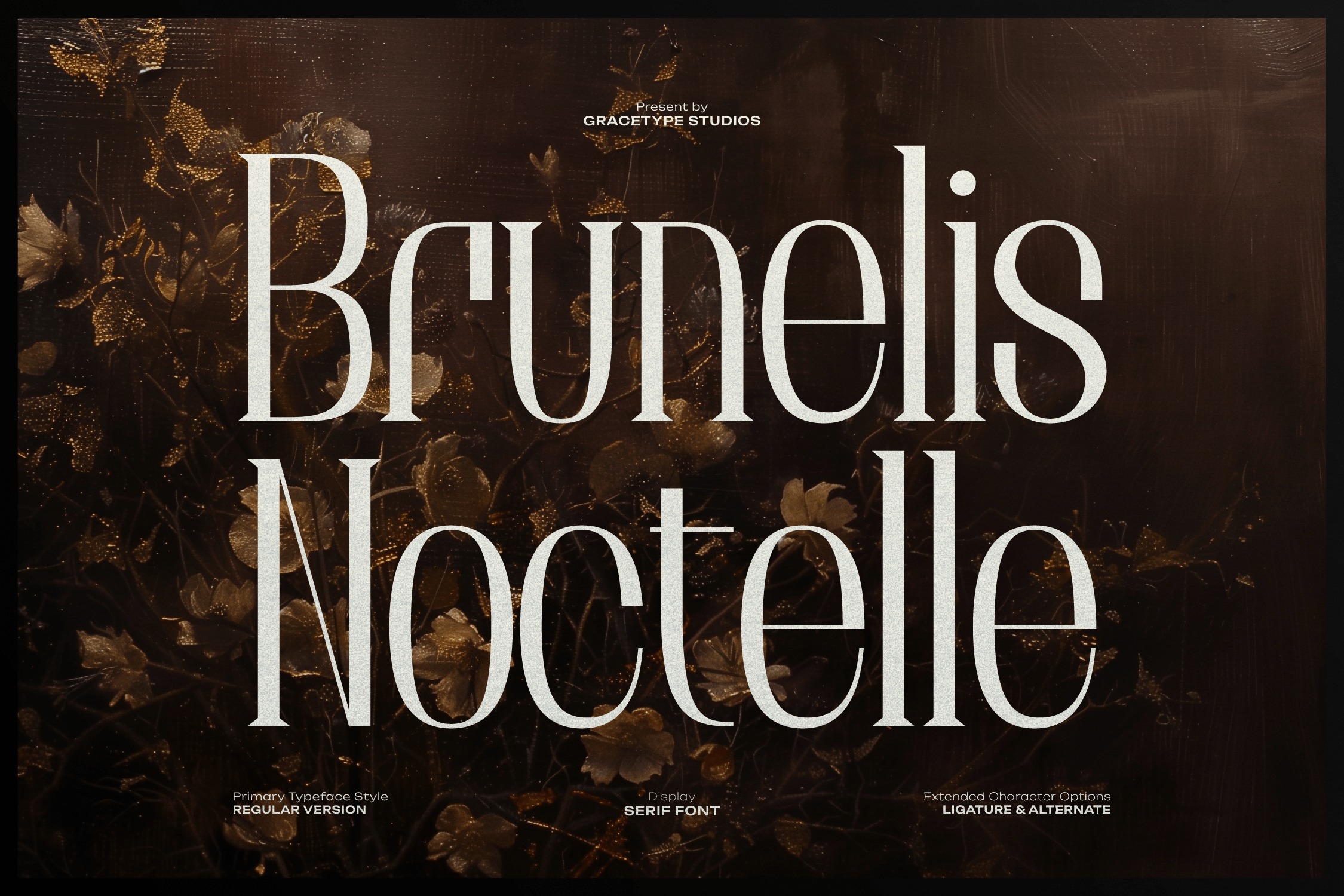 Brunelis Noctelle Font brings a balanced structure and contemporary look, making it suitable for both digital and print design. Brunelis Noctelle | Display Serif Font, from Gracetypestudio, suitable for any projects such as: logos, branding projects, homeware designs, product packaging, mugs, quotes, posters, shopping bags, t-shirts, book covers, name card, invitation cards, greeting cards, label, photography, watermark, special events, and all your other lovely projects that need a Serif taste.