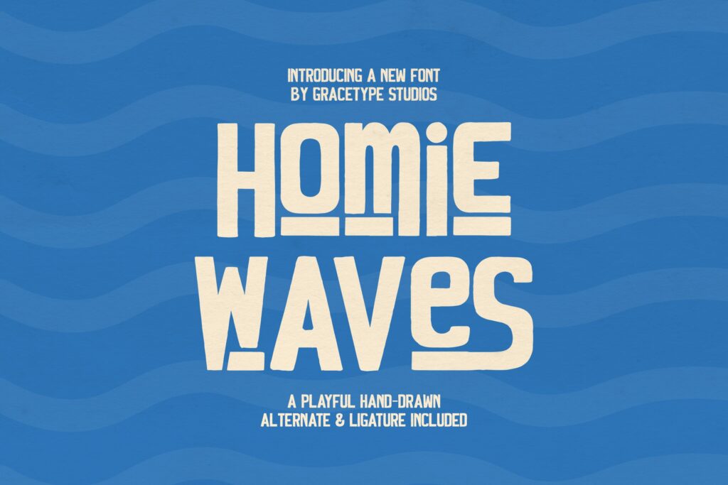 Homie Waves Font brings a balanced structure and contemporary look, making it suitable for both digital and print design. Homie Waves | Playful Hand Drawn, from Gracetypestudio, suitable for any projects such as: logos, branding projects