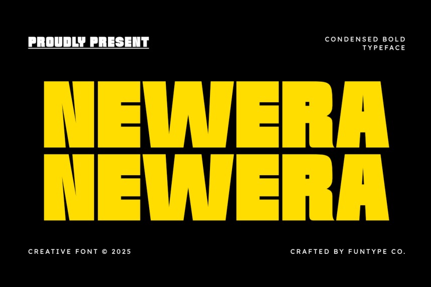 Newera Font is a distinctive and expressive font crafted to bring personality, structure, and creative energy into your projects. Newera Font is a dominant, loud condensed bold creative typeface designed for maximum impact and a powerful statement.