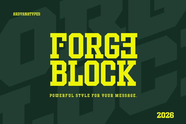 Forge Block Font is a versatile font designed to adapt beautifully across different design styles, offering dependable readability and balance. Forge Block is a bold display typeface designed to deliver strength, confidence, and visual impact.