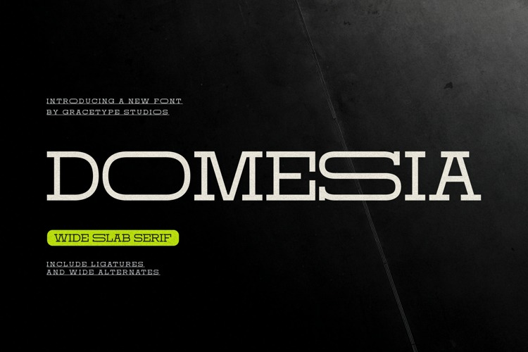 Domesia – Modern Slab Serif Font is a professionally designed typeface that delivers clarity, structure, and consistent performance across various design applications. Domesia | Wide Slab Serif, from Gracetypestudio, suitable for any projects such as: logos, branding projects, homeware designs
