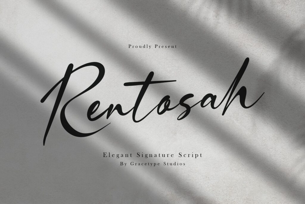HANDWRITTEN, SCRIPT, SIGNATURERentosah – Elegant Signature Script Font is a distinctive and expressive font crafted to bring personality, structure, and creative energy into your projects. Rentosah | Elegant Signature Script, from Gracetypestudio, suitable for any projects such as: logos, branding projects