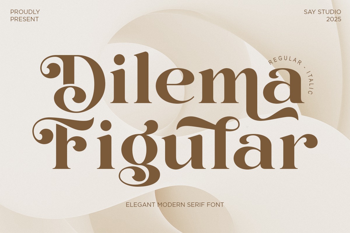 Dilema Figular Font is a premium-quality font developed to enhance your work with a polished, modern, and visually elevated look. Dilema Figular is an elegant modern serif font that blends refined curves with expressive flourishes. Designed with both Regular and Italic styles, this typeface delivers a sophisticated character ideal for branding, editorial layouts, wedding stationery, boutique packaging, and high-end visual identities. Its graceful serif forms and subtle contrast create a luxurious impression that feels timeless yet contemporary. Perfect for designers who want to add a romantic, stylish, and premium aesthetic to their creative projects.