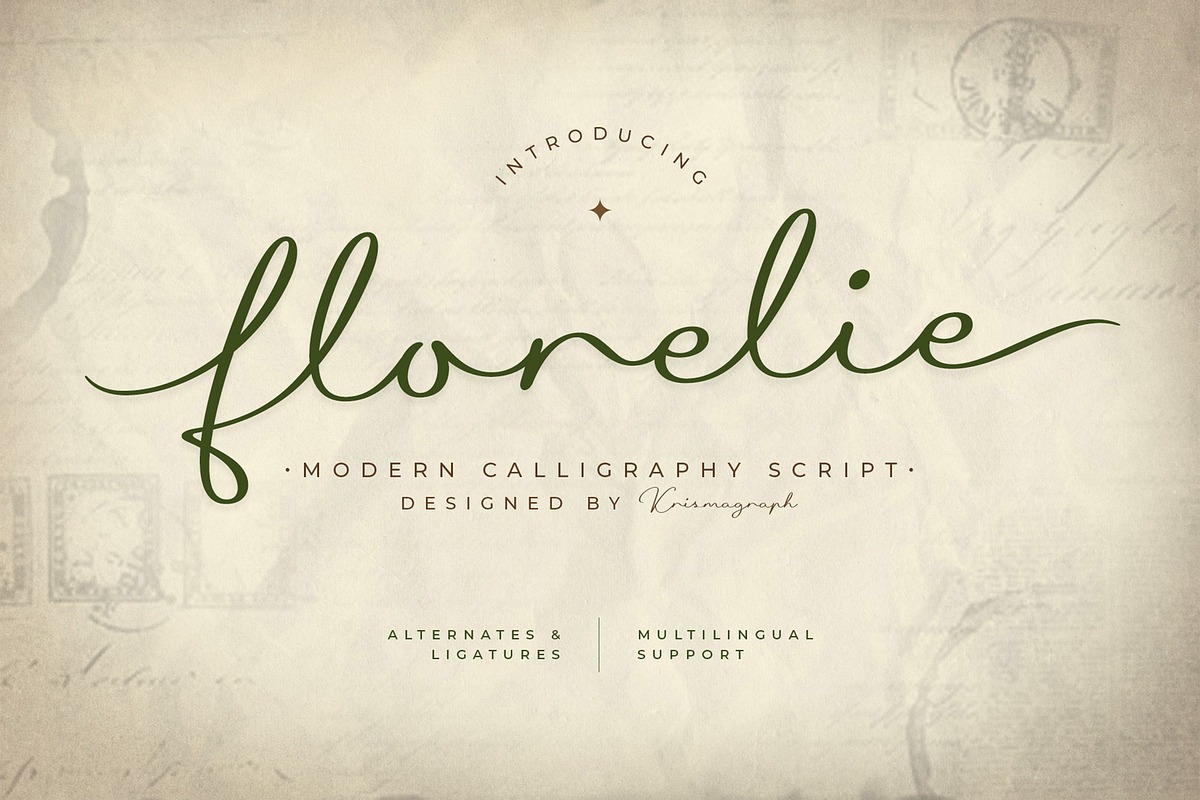 Every letter in Florelie was carefully crafted to deliver both beauty and readability. The font includes alternates and ligatures for creating unique combinations, allowing your design to feel more personal and sophisticated. With its multilingual support and graceful aesthetic, Florelie is a perfect choice for designers seeking a refined and versatile script font.