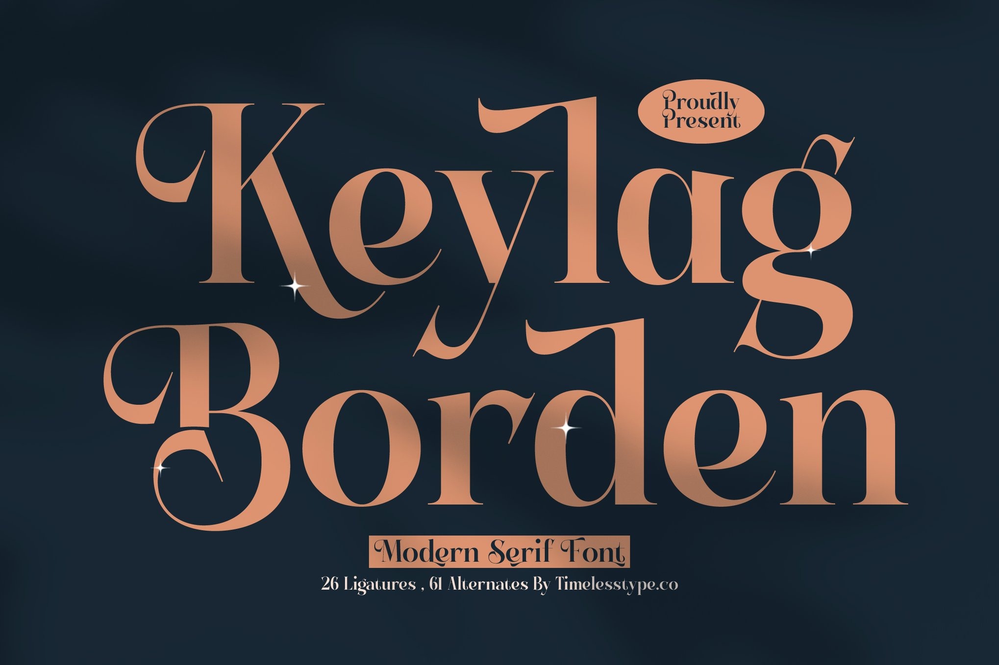 Keylag Borden Font is a modern serif display font that exudes luxury, elegance, and high-aesthetics. With 26 ligatures and 61 alternates, this font offers refined details and stylish versatility — perfect for branding, packaging, editorial titles, and premium logo designs.