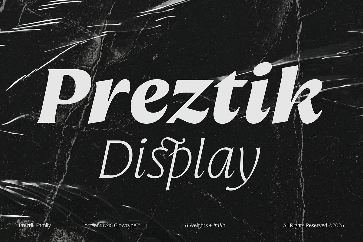 Rooted in serif traditions yet shaped for current visual culture, Preztik features controlled contrast, expressive curves, and sharp terminals that bring clarity at text sizes and authority at display scales. Its rhythm is calm but assertive, allowing the type to perform effortlessly across editorial layouts, branding systems, fashion visuals, and cultural graphics.