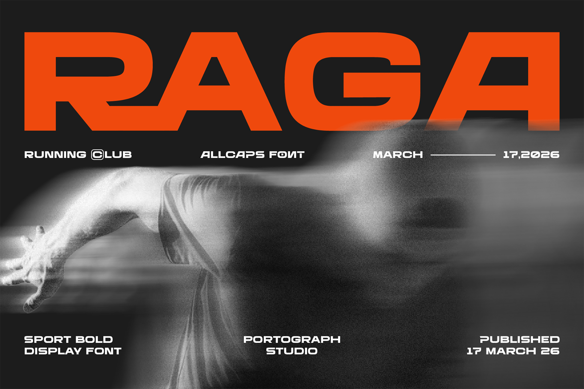 Inspired by sports, racing, and fitness culture, Raga is perfect for creating striking headlines, posters, branding, and digital content. Its modern and aggressive style makes it ideal for projects that require speed, strength, and performance aesthetics.