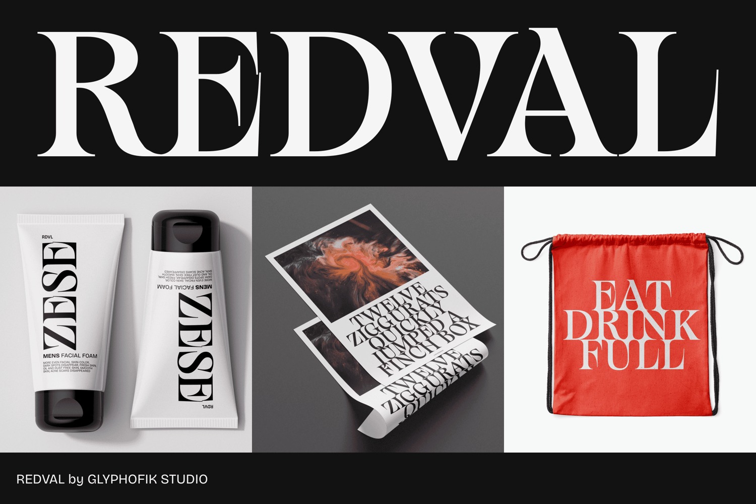 Redval Font — a sharp, elegant serif font designed by Glyphofik Studio. While the “Trial” version is free for personal use, commercial use requires a paid license, priced based on the size of your company. Once licensed, you may use Redval for desktop, print, web, logos, branding, clothing, and other commercial projects.