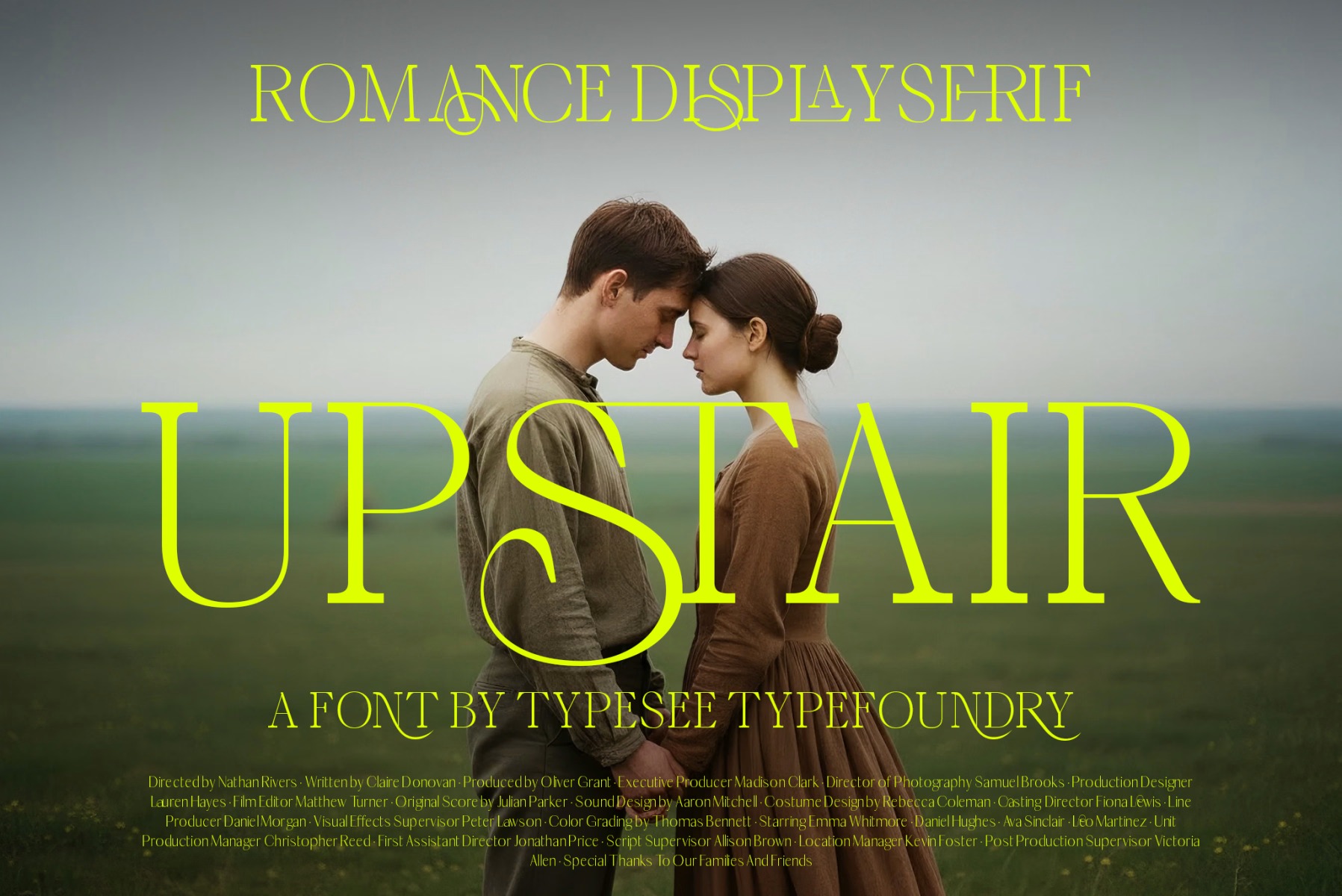 Upstair Font is a distinctive and expressive font crafted to bring personality, structure, and creative energy into your projects. Upstair is a romantic display serif with soft curves and elegant character shapes, designed for cinematic titles, lifestyle visuals, and emotionally driven typography.