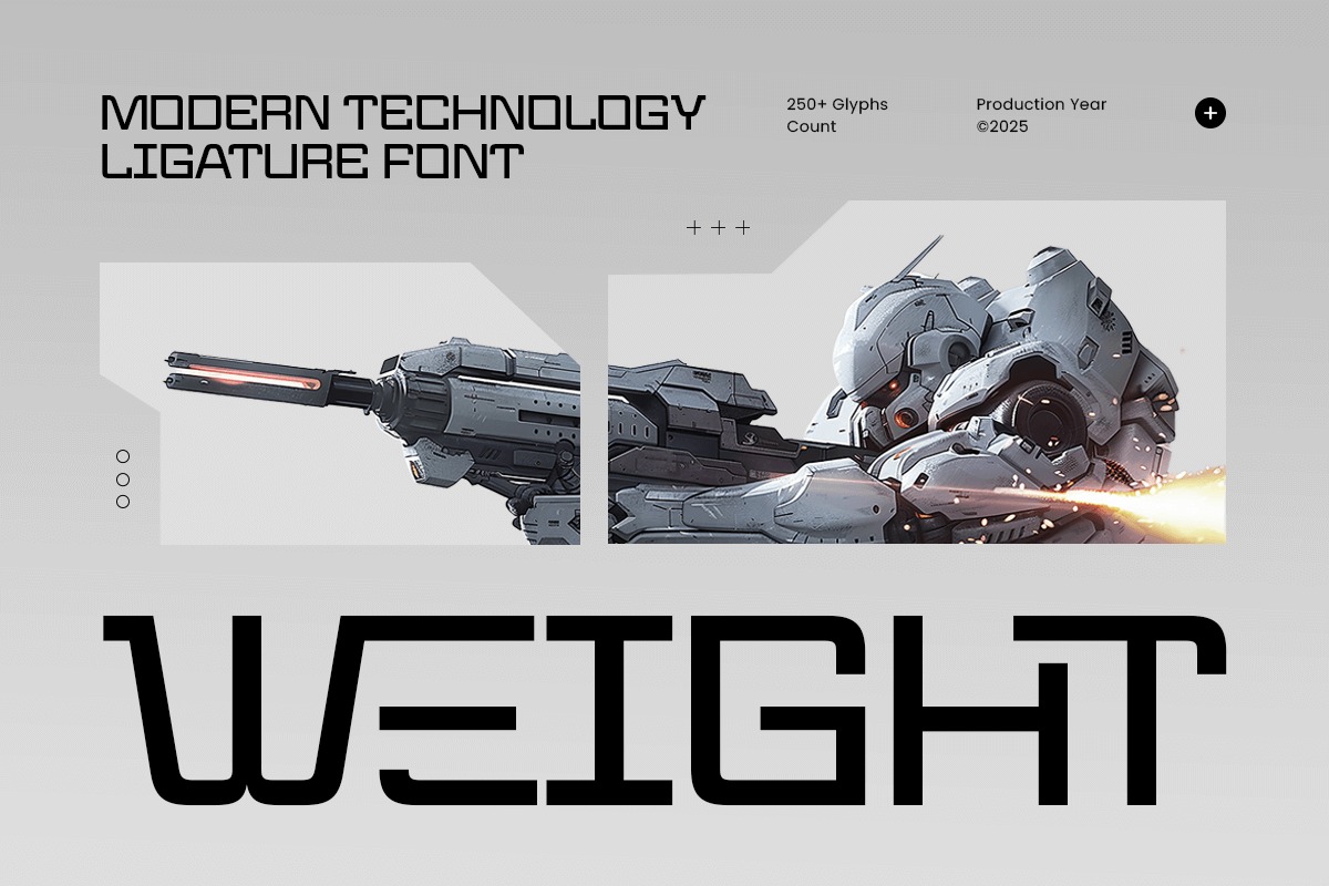 Its advanced ligature designs create smooth, connected forms that deliver a premium and innovative typographic experience. Weight is perfect for startups, software companies, hardware brands, IT services, and creative studios seeking a strong, modern, and highly professional font to represent their technology-focused identity.