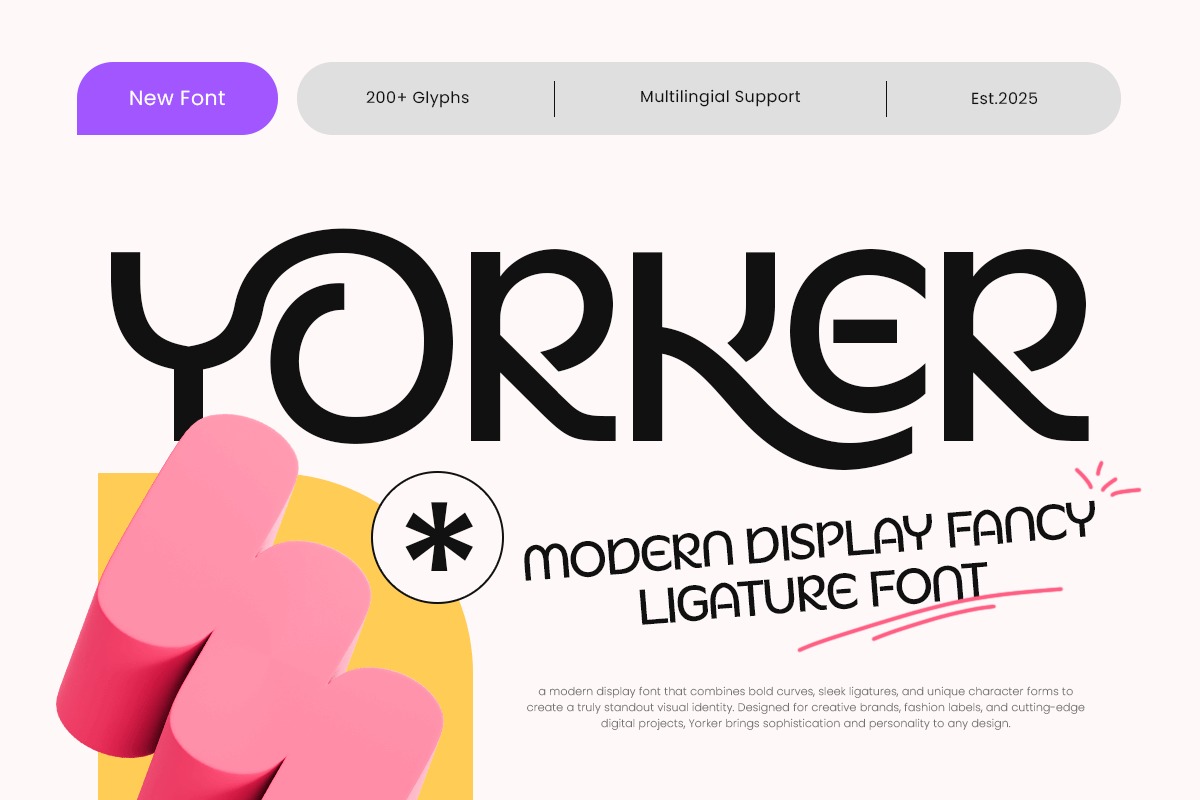 Yorker Font is a modern display font with fancy ligatures designed to bring personality, creativity, and contemporary elegance into expressive typography. Featuring stylish letterforms and unique ligature combinations, Yorker offers a distinctive visual identity that helps designs stand out while remaining clear and professional. This font is crafted for designers who want modern typography with artistic character and strong branding potential.